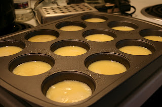- Divide evenly in a lightly greased muffin tin