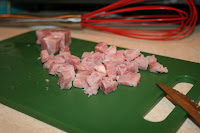 - Chop ham into tiny pieces appropriate for muffin-sized portions