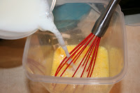 - Whisk eggs and milk together